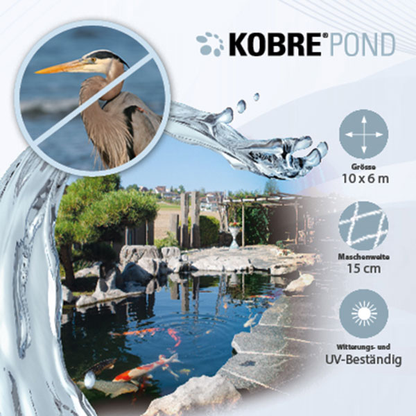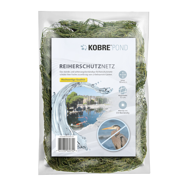 Mit dem stabilen und witterungsbeständigen Reiherschutznetz können Sie Ihre Tiere vor unliebsamen Gästen schützen. Zudem beugt es dem Laubeinfall in den Teich vor, was Ihnen die mühselige Arbeit der Teichreinigung enorm erleichtert. Das wiederum reduziert wesentlich die Schlamm- und Algenbildung. Das Kobre®Pond Reiherschutznetz ist ein hochwertiges, UV-stabiles Produkt für den dauerhaften Einsatz. Zur einfachen Befestigung empfehlen wir die stabilen und hochwertigen Heringe (siehe Zubehör).