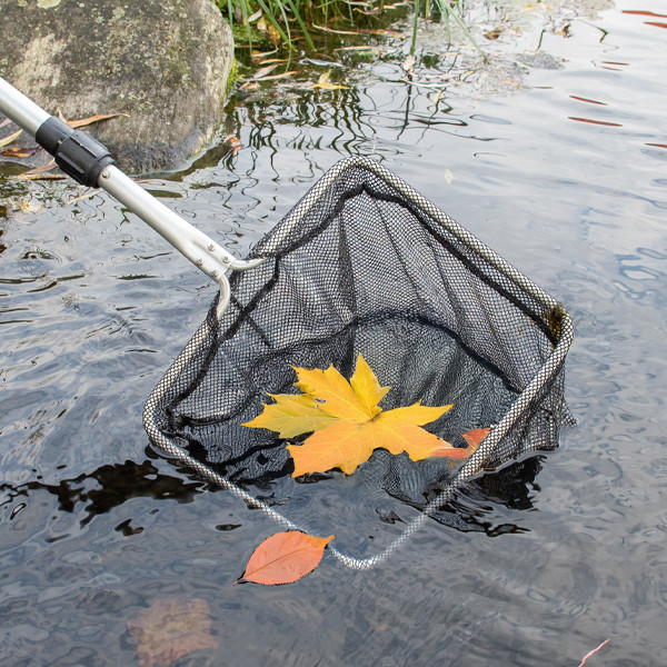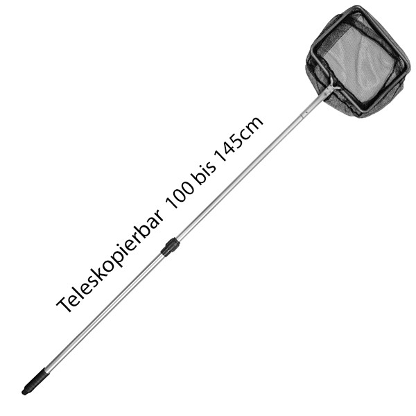 Teleskopstiel für optimale Reichweite Der Kescher ist mit einem teleskopierbaren Stiel von bis zu 145 cm Länge ausgestattet. So erreichen Sie problemlos jede Stelle Ihres Teichs - ohne nasse Füsse. Der leichte Aluminiumstiel liegt angenehm in der Hand und lässt sich platzsparend zusammenschieben.