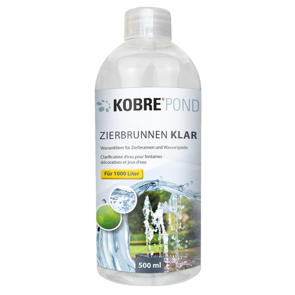 Anwendungsbereich Kobre®Pond Zierbrunnen Klar verleiht Zierbrunnen und Wasserspiele rasch klares und algenfreies Wasser. Geeignet für sämtliche Zierbrunnen und Wasserspiele im Innen- und Aussenbereich. Kobre®Pond Zierbrunnen Klar hält was es verspricht: Schnelle Hilfe gegen Algen, unangenehme Gerüche und glitschige Beläge. Kobre®Pond Zierbrunnen Klar ist nicht für Biotope und Fischteiche geeignet.