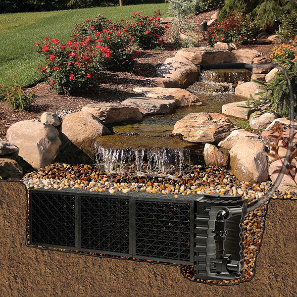 Die extrem tragfähigen, kombinierbaren Matrixblöcke eignen sich bestens als Auffangbecken von Bachläufen und Wasserfällen, oder als Pflanzenfilter unterhalb begrünter Flächen. Sie werden unterirdisch, innerhalb des Folienbeckens platziert und transportieren grosse Wassermengen auf kleinstem Raum. Die unzähligen Kombinationsmöglichkeiten und die einfache Handhabung machen das modulare Blocksystem einzigartig!