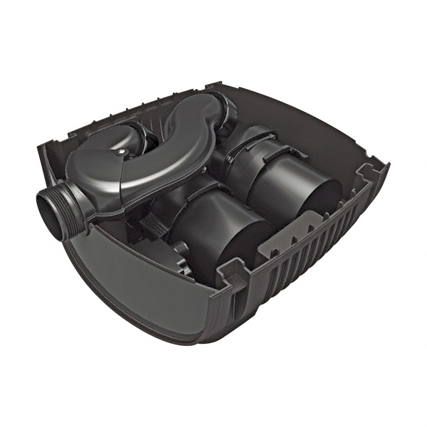 Zusätzlich zur Teichbodenfiltrierung ist der gleichzeitige Anschluss eines Satellitenfilters oder Skimmers möglich