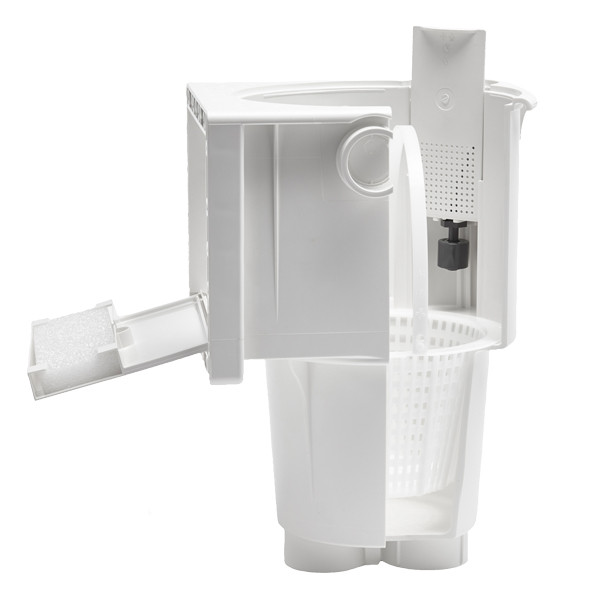 Leistungsstarker Wandskimmer für den Einsatz an Folien- Beton- sowie Fliesenbecken. Der Skimmer verfügt über eine bewegliche Skimmerklappe, einen grossen Filterkorb, ein Flanschset sowie über eine höhenverstellbare Halterung für den Niveausensor. Der Skimmer verfügt ebenfalls über einen Überlaufanschluss. Optional ist der Skimmer mit einem Schwimmer zur automatischen Wassernachspeisung ausgestattet.