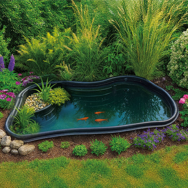 Mit einem Volumen von 1000 Litern bietet dieser Fertigteich die perfekte Bühne für umfassende Bepflanzung, Fischhaltung oder integrierte Technik.