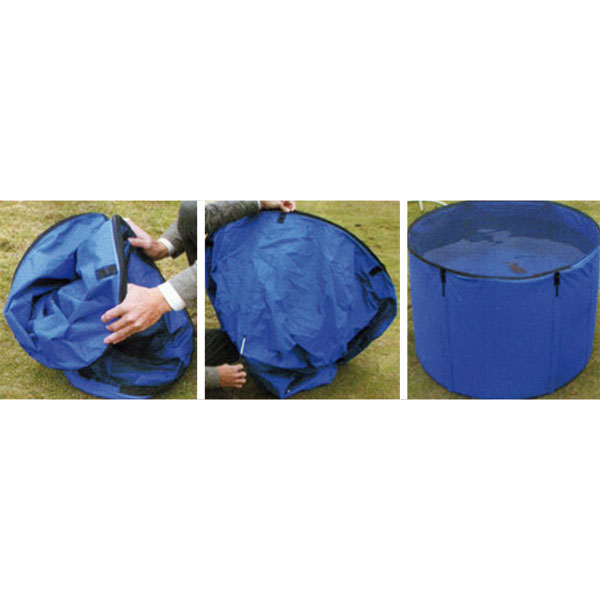 Koi-Wanne Flex Die Vorteile der neuen Koi-Wanne flex liegen auf der Hand. Sie lassen sich platzsparend in der zugehörigen Tragetasche verstauen und sind bei Bedarf mit wenigen Handgriffen einsatzbereit. Das eingenähte, mittel eines Reissverschlusses zu öffnende Abdecknetz garantiert Ihren Fischen höchste Sicherheit. Der ideale Helfer beim Umsetzen, Behandeln oder Fotografieren Ihrer Koi.