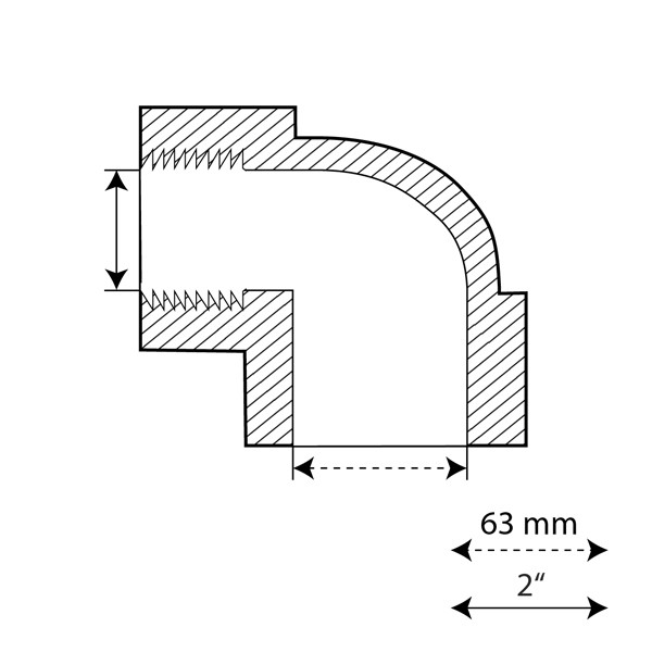 PVC-U Winkel 90 Grad 63mm x 2 Zoll IG